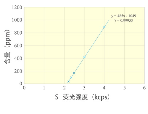 图1. 低(0~1000ppm)含量范围S样品的工作曲线