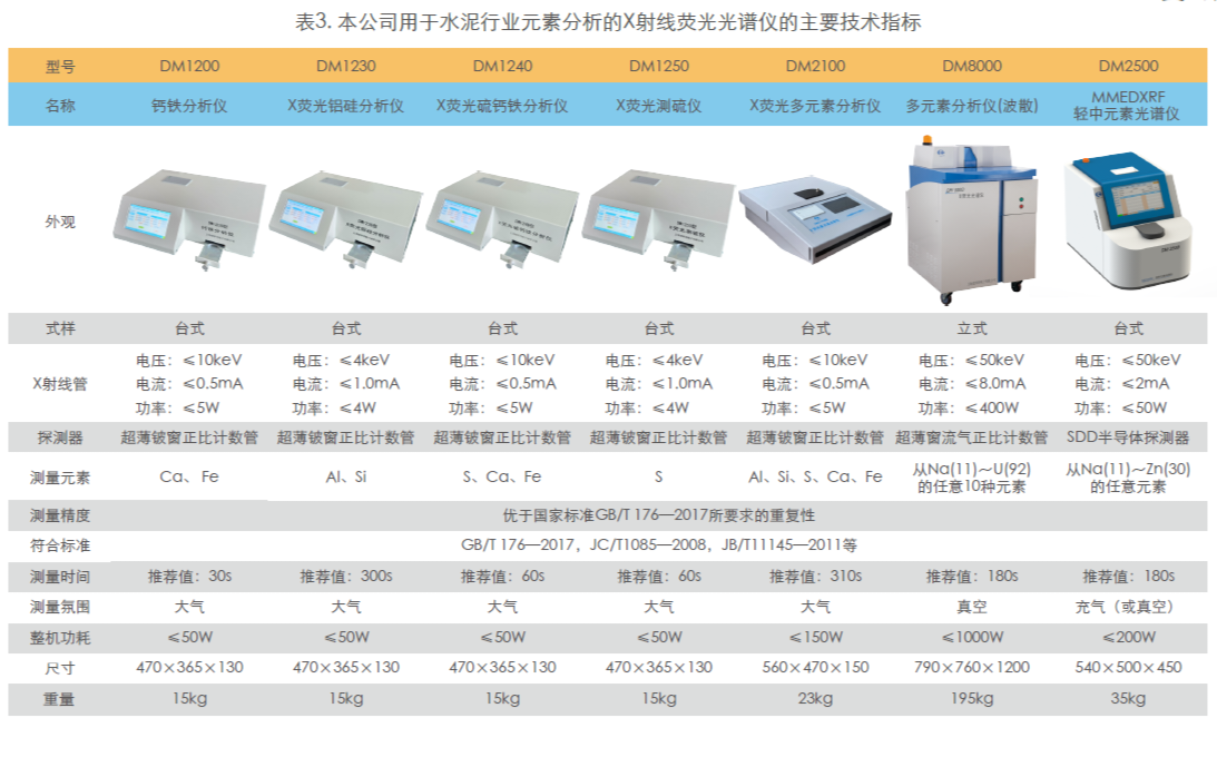 上海爱斯特电子有限公司自成立以来的30多年,始终深耕于水泥元素分析的X射线荧光光谱仪的研发制造。从公司成立起的放射源激发正比管作探测器的EDXRF光谱仪DM1001、DM1010、DM1010A钙铁分析仪,到X光管激发正比管作探测器的EDXRF光谱仪DM1200钙铁分析仪、DM1250X荧光测硫仪、DM1240硫钙铁分析仪、DM1230硅铝分析仪、DM2100X荧光多元素分析仪,这些价廉物美只要几万元最多十几万元的用正比管作探测器的EDXRF光谱仪都只能测量部分水泥行业需要测量的元素。十一年前本公司推出了多道WDXRF光谱仪DM8000多元素分析仪(波散),从而有了能完全符合国家标准能测所有水泥行业需要测量的元素的XRF光谱仪。但DM8000价格在80万左右。现今,本公司推出的结构更简单、使用维护更方便、性能指标更好的DM2500 MMEDXRF轻中元素光谱仪, 其价格仅为其一半。所以我们认为: